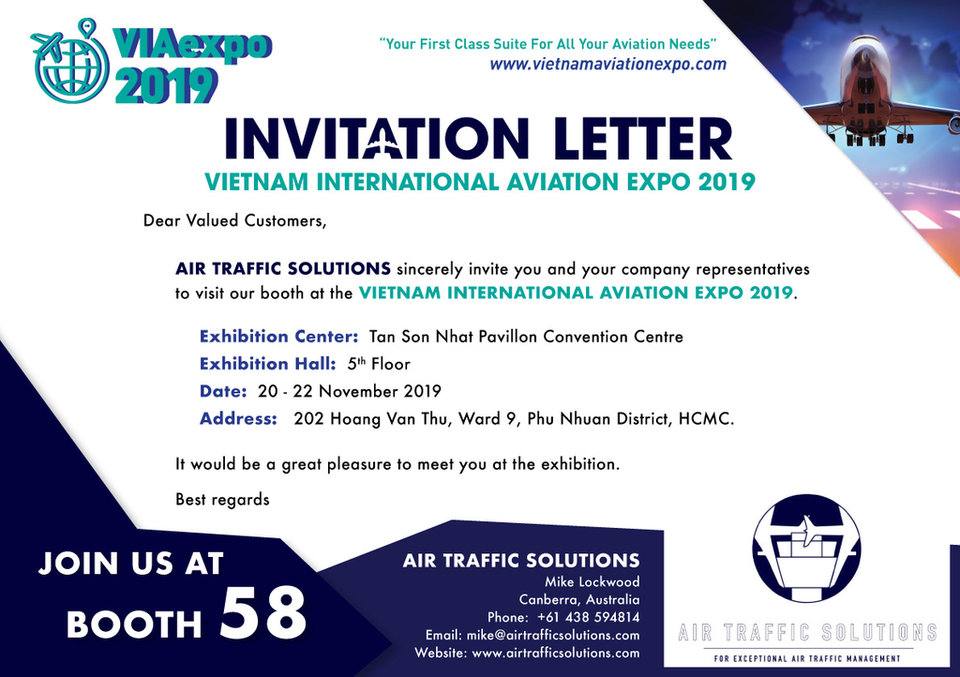 We are thrilled to announce that ATS will be participating in the long-awaited Vietnam International Aviation Expo 2019 (VIAexpo 2019) in Ho Chi Minh City (HCMC). We’ll be taking off to this event, set to launch November 20 - 22, to catch up on all the latest information and insights in aviation industry expertise. We’re excited to participate as a leader of Australia’s aviation intelligence.